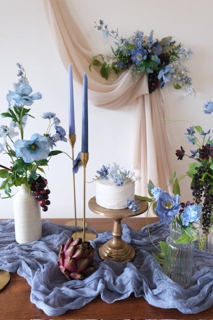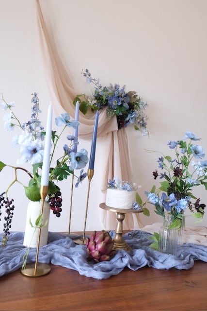 テーブルクロス(敷布)の上にフラワーベースを置くと倒れやすく、