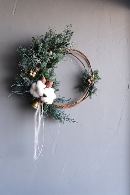 タマラックコーンなどのたくさんの実をあしらったリースです。
