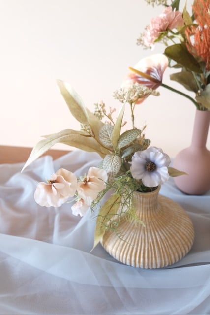 テーブルクロス(敷布)の上にフラワーベースを置くと倒れやすく、