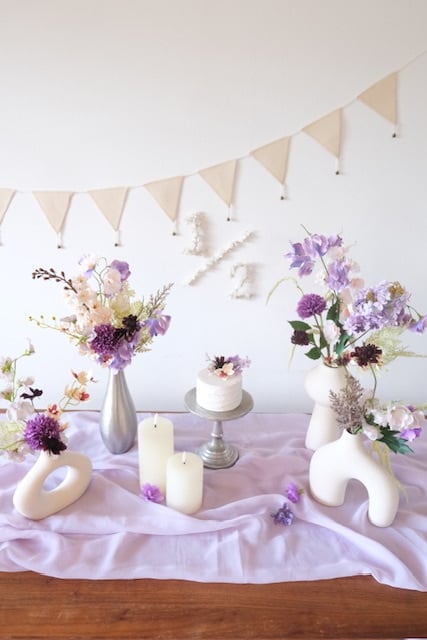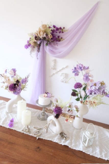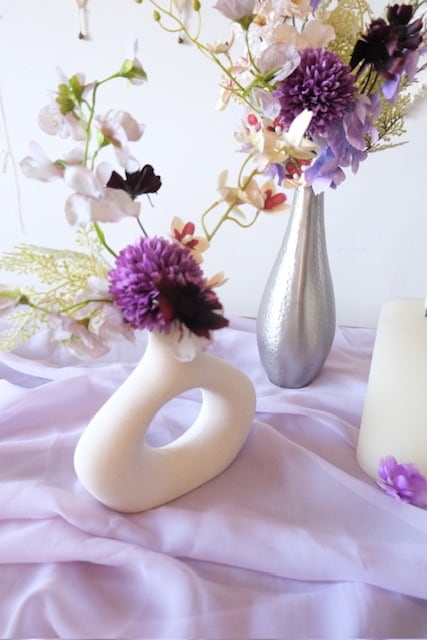 テーブルクロス(敷布)の上にフラワーベースを置くと倒れやすく、